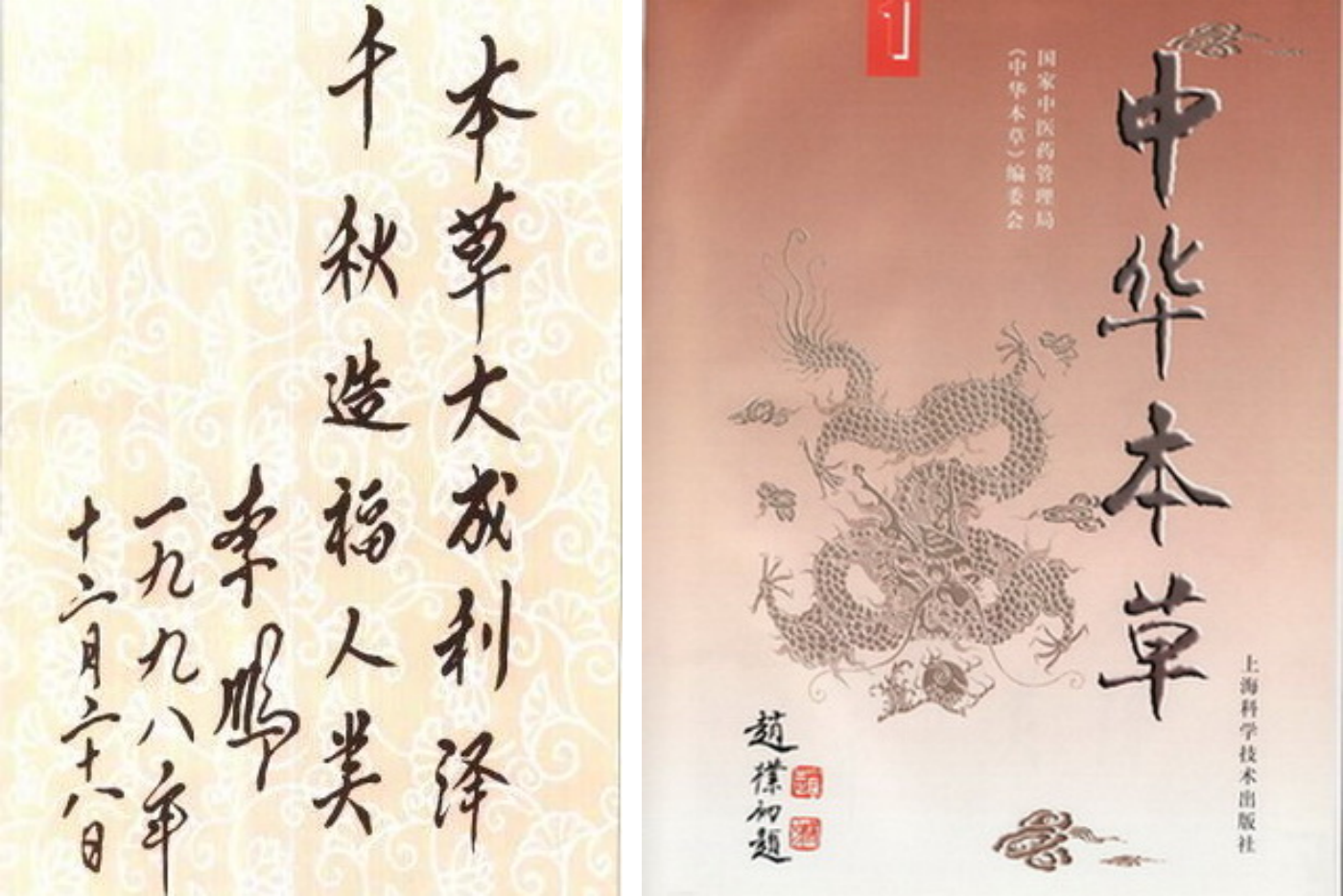 1991年10月19日,时任总理的李鹏委员长在“91'北京国际传统医药大会”上正式向海内外宣布我国正在编纂《中华本草》,并誉之为“新的《本草纲目》”。1998年12月28日,还为该书题词:“本草大成,利泽千秋,造福人类”。《中华本草》精选本和30卷本出版后,先后在北京人民大会堂召开《中华本草》精选本首发式和《中华本草》出版座谈会,时任国务委员彭佩云、全国人大常委会副委员长何鲁丽、全国政协副主席阿沛•阿旺晋美等领导分别出席。原全国政协副主席赵朴初亲自为《中华本草》题写了书名。国家科委、新闻出版署、江苏省政府及省有关主管部门等对编纂工作给予了大力支持。