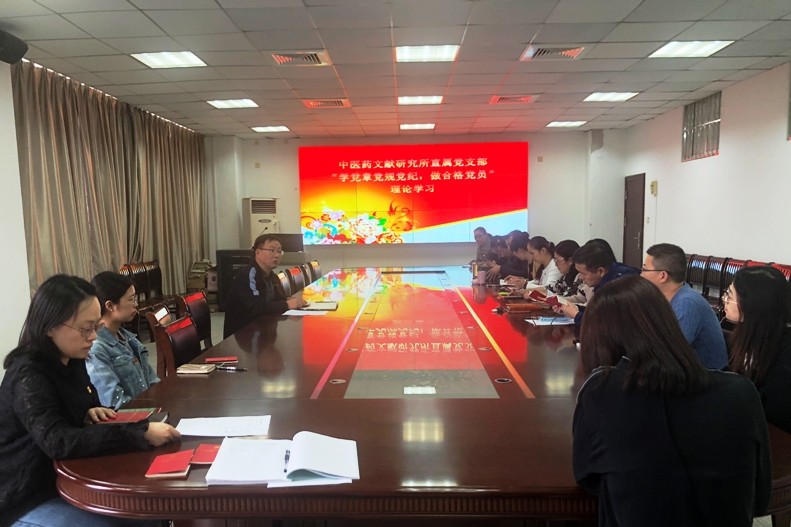 为进一步推进习近平新时代中国特色社会主义思想入脑入心,推动“不忘初心、牢记使命”主题教育制度化、常态化,积极响应学校党委组织部关于基层党组织理论学习的号召,2020年10月14日下午14:30,中医药文献研究所直属党支部在B14-431会议室开展“学党章党规党纪,做合格党员”理论学习活动,支部全体党员参加了此次学习。