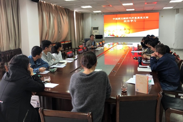 为落实校党委关于基层党组织理论学习的安排,2020年10月21日下午14:30,中医药文献研究所直属党支部在B14-431会议室开展学习习近平总书记系列讲话活动,本次活动由支部纪检委员衣兰杰老师主持,支部全体党员参加了学习。