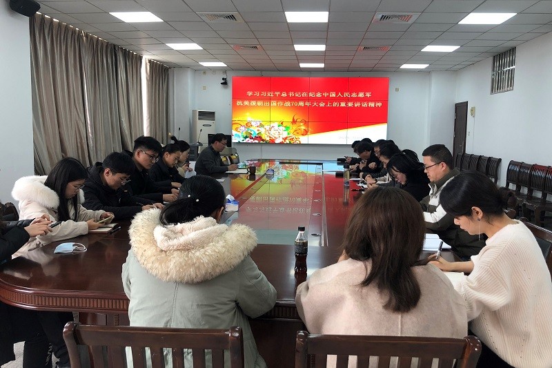 会上,支部集体学习了习近平总书记在纪念中国人民志愿军抗美援朝出国作战70周年大会上的讲话。习近平总书记的重要讲话, 引领我们更加深刻地感悟到抗美援朝历史性决策的正确性,感悟到抗美援朝战争伟大胜利带来的深远影响,感悟到立足新的历史起点从抗美援朝战争中汲取强大精神动力、实现“两个一百年”奋斗目标的意义所在。