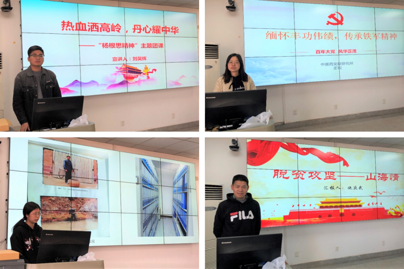 根据学校《关于组织开展南京中医药大学“学党史、强信念、跟党走”团支部书记思政技能大比武的通知》,4月9日,中医药文献研究所开展团支部书记上团课竞赛活动,6名研究生团支部书记参加竞赛,文献所全体团员观赛。