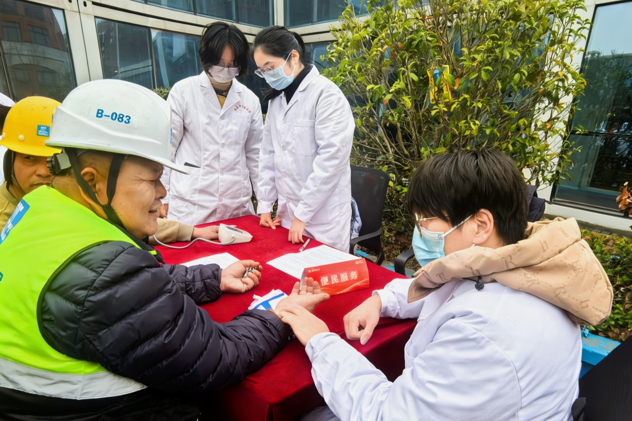 本次活动坚持党建引领、团建赋能,将专业实践与志愿服务深度融合。活动现场,青年志愿者们充分发挥中医药专业特长,有序为工友们测量血压、开展中医把脉问诊,并结合春季养生特点,普及常见病预防与保健知识,引导大家增强健康意识、提升自我防护能力。志愿者们耐心细致的服务,赢得了现场工友们的广泛好评。