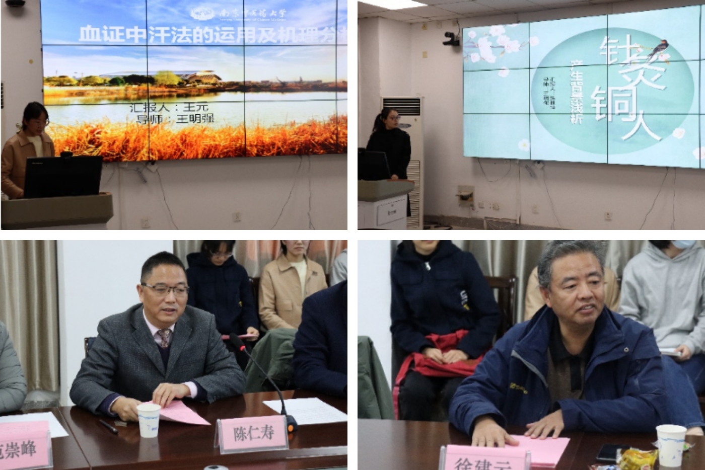 第三阶段为研究生论坛。由南京中医药大学马克思主义学院•医学人文学院医学人文教研室主任包玉颖副教授主持,两位中医医史文献学科研究生进行了汇报:王元《血证中汗法的运用及机制分析》、张雅坤《针灸铜人产生背景浅析》,由陈仁寿和徐建云两位教授分别进行了点评。