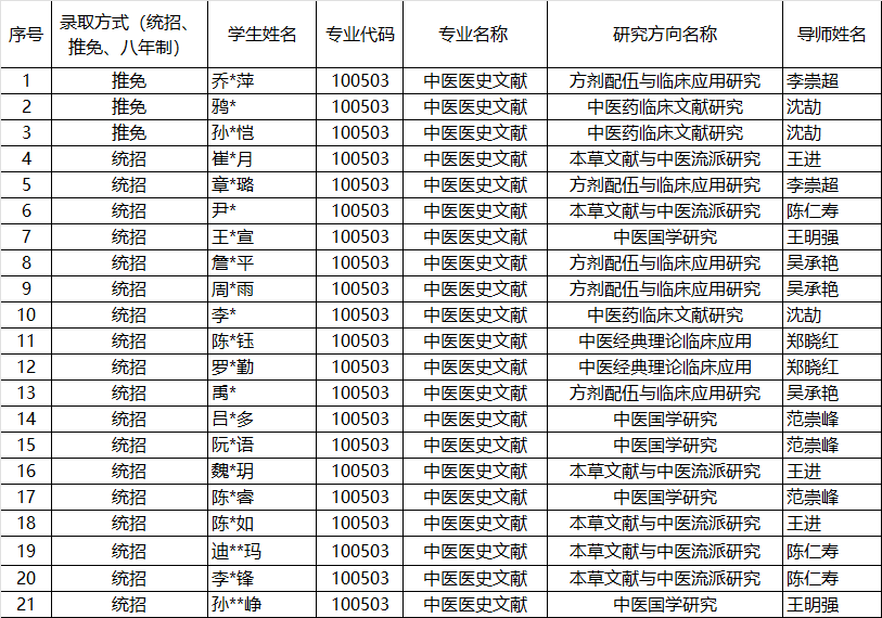 中医药文献研究院2025级硕士研究生导师双选结果公示